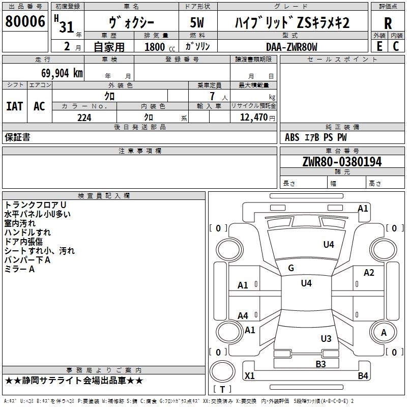TOYOTA VOXY 2019 г., лот № 80006