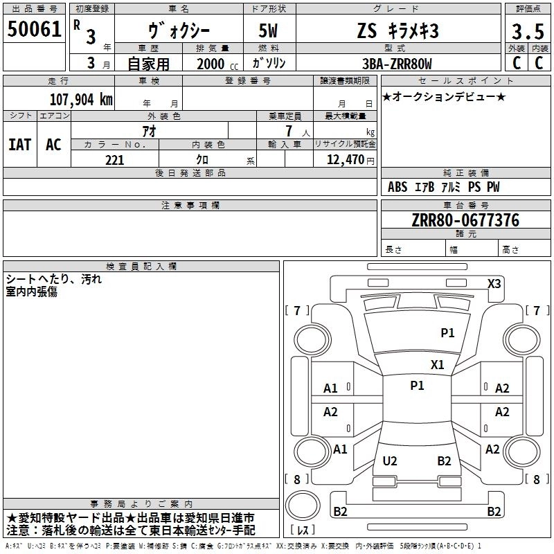 TOYOTA VOXY 2021 г., лот № 50061
