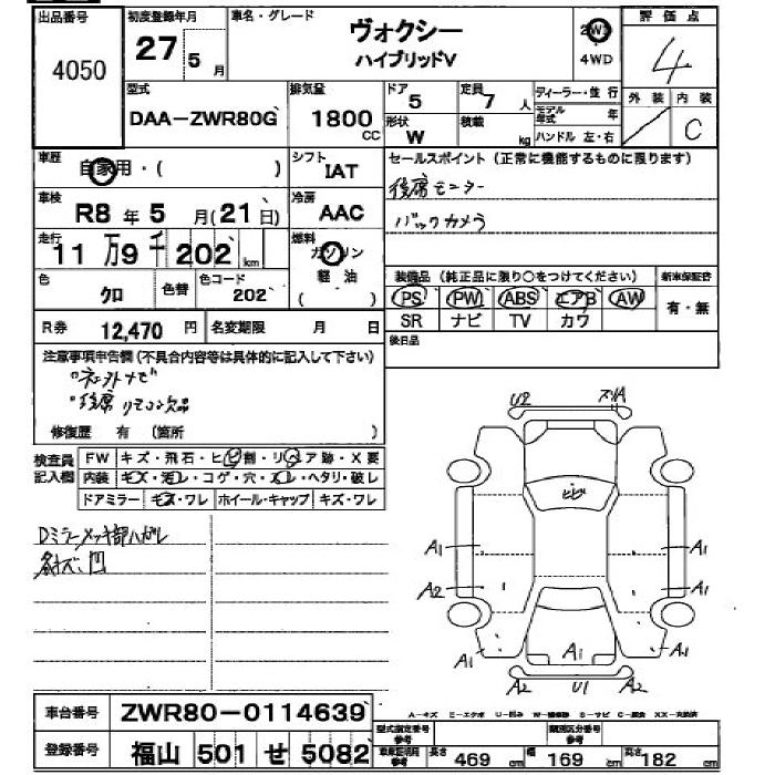 TOYOTA VOXY 2015 г., лот № 4050