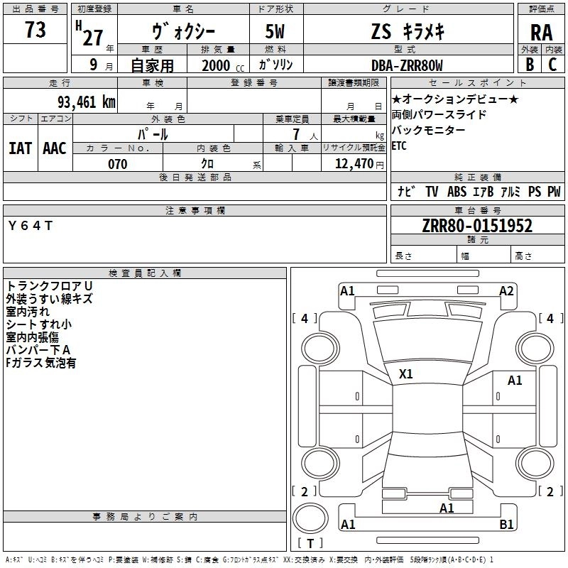 TOYOTA VOXY 2015 г., лот № 73