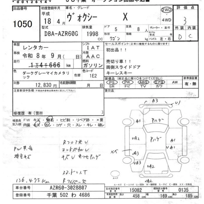 TOYOTA VOXY 2006 г., лот № 1050