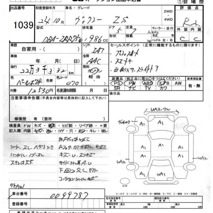 TOYOTA VOXY 2012 г., лот № 1039