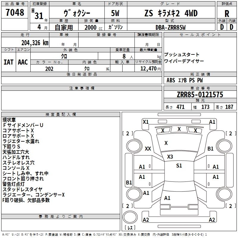Год выпуска2019 Пробег 204 000 км КузовZRR85W КомплектацияZS KIRAMEKI 2 4WD