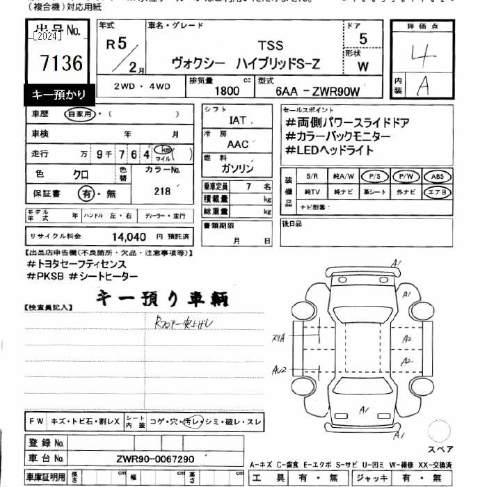 TOYOTA VOXY 2023 г., лот № 7136