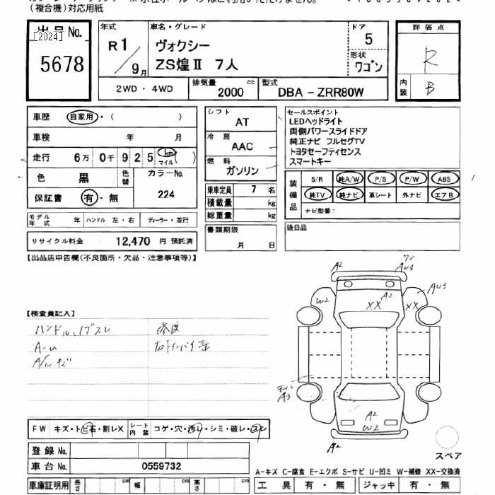 TOYOTA VOXY 2019 г., лот № 5678