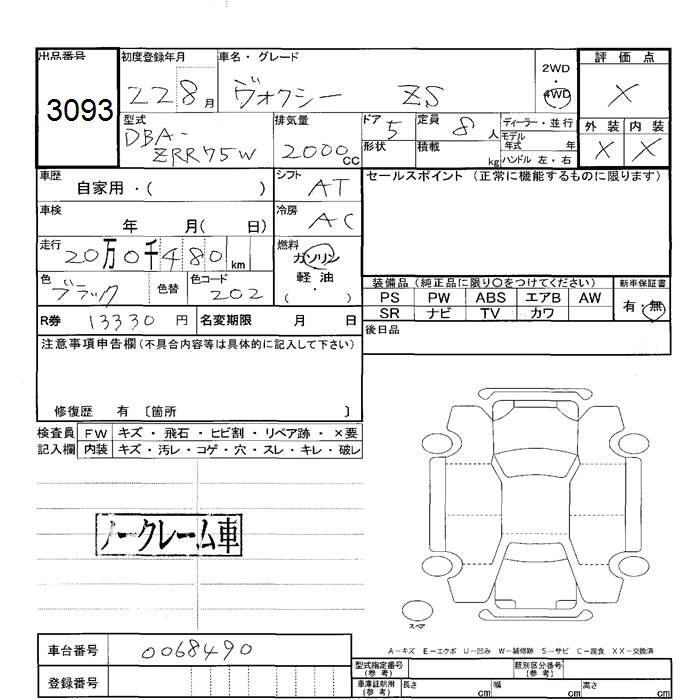TOYOTA VOXY 2010 г., лот № 3093