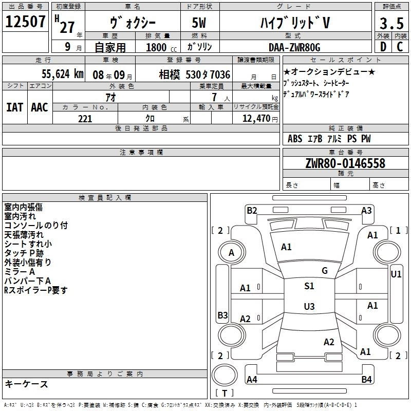 TOYOTA VOXY 2015 г., лот № 12507