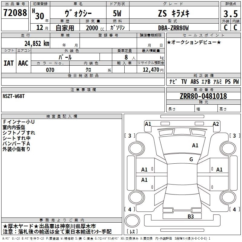 TOYOTA VOXY 2018 г., лот № 72088