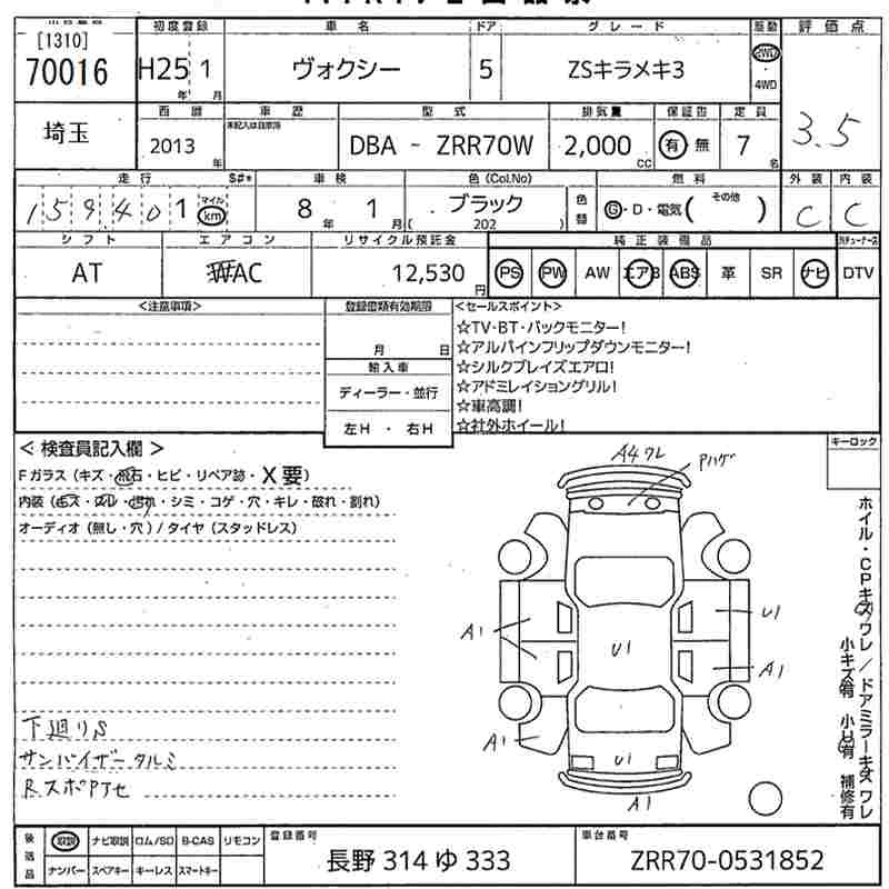 TOYOTA VOXY 2013 г., лот № 70016