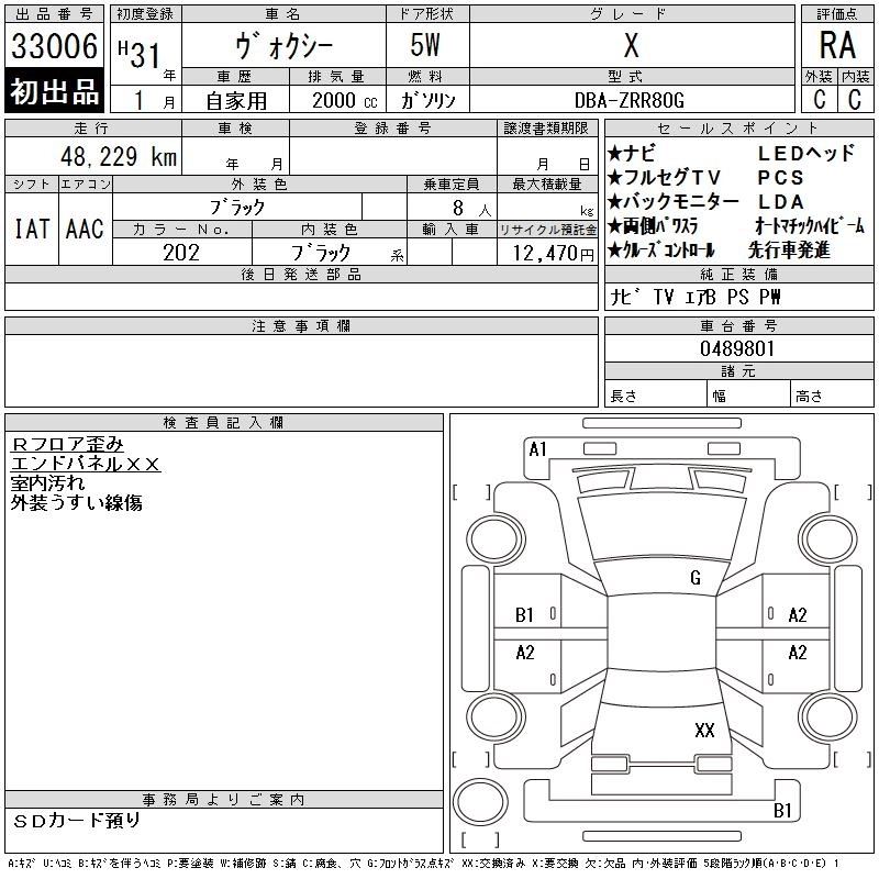 TOYOTA VOXY 2019 г., лот № 33006