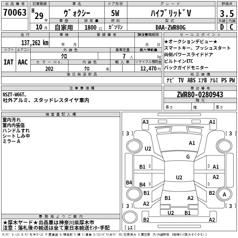 TOYOTA VOXY 2017 г., лот № 70063