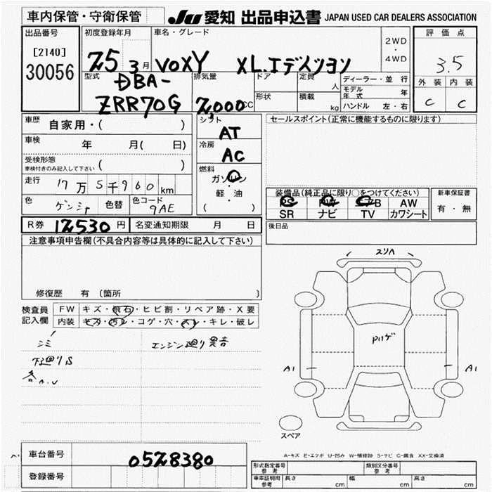 TOYOTA VOXY 2013 г., лот № 30056