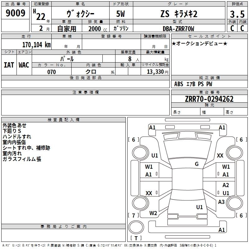Год выпуска2010 Пробег 170 000 км КузовZRR70W КомплектацияZS KIRAMEKI 2