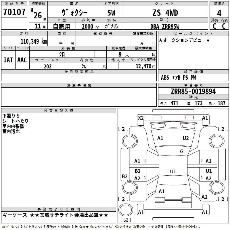 TOYOTA VOXY 2014 г., лот № 70107