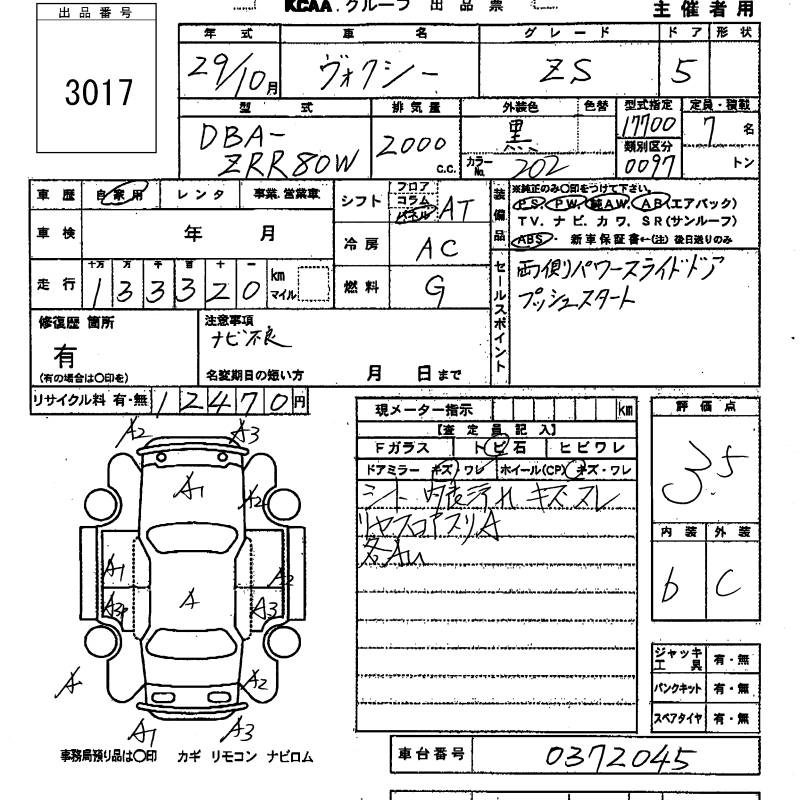 TOYOTA VOXY 2017 г., лот № 3017