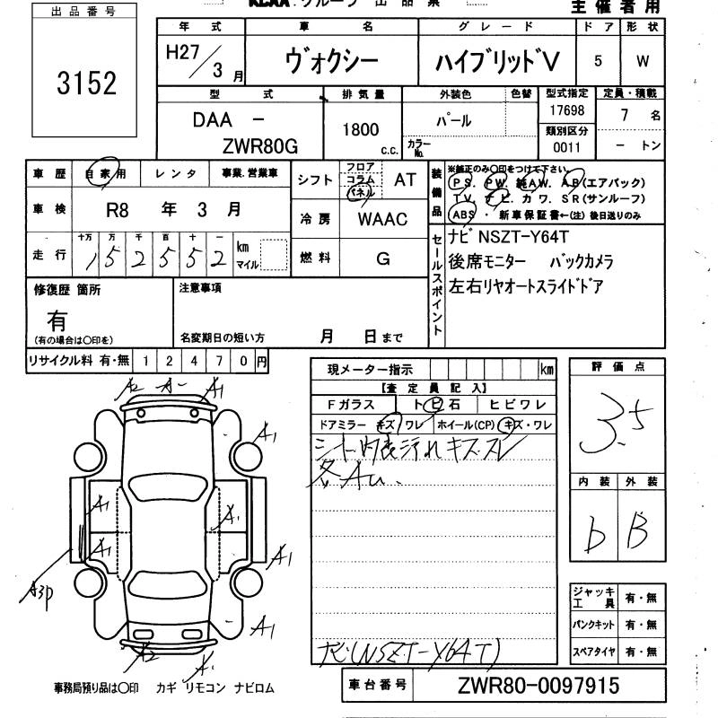 TOYOTA VOXY 2015 г., лот № 3152