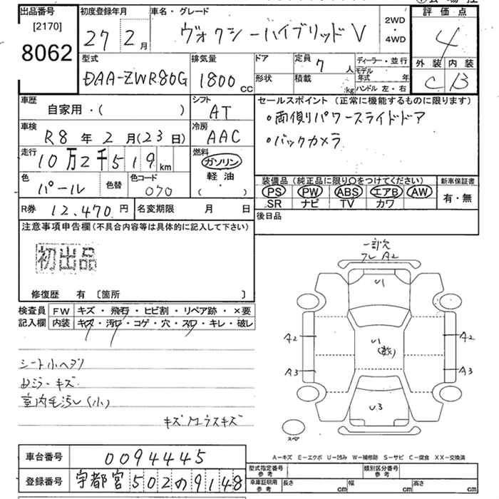 TOYOTA VOXY 2015 г., лот № 8062