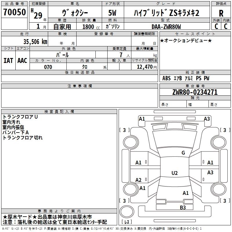TOYOTA VOXY 2017 г., лот № 70050
