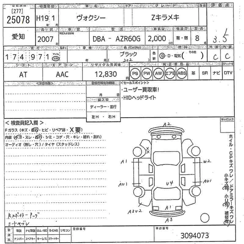 TOYOTA VOXY 2007 г., лот № 25078