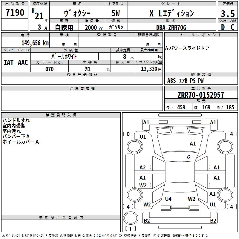 TOYOTA VOXY 2009 г., лот № 7190