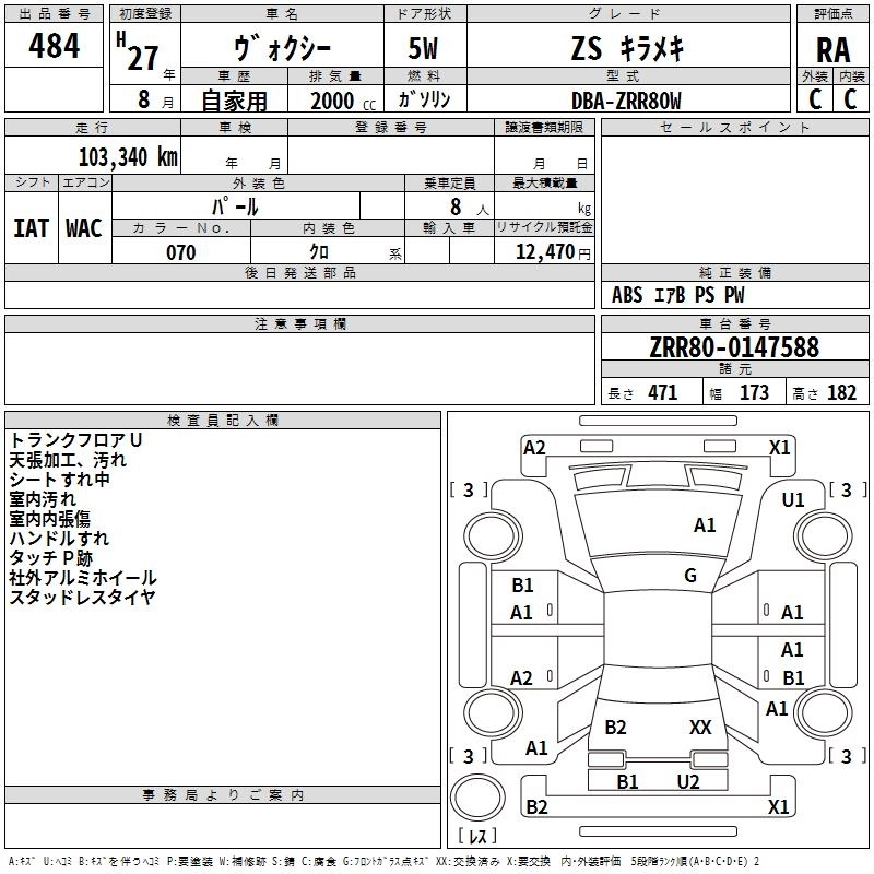 TOYOTA VOXY 2015 г., лот № 484