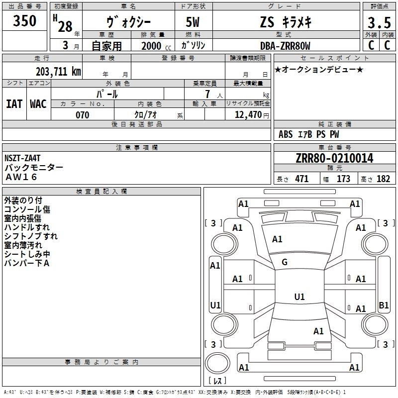 TOYOTA VOXY 2016 г., лот № 350