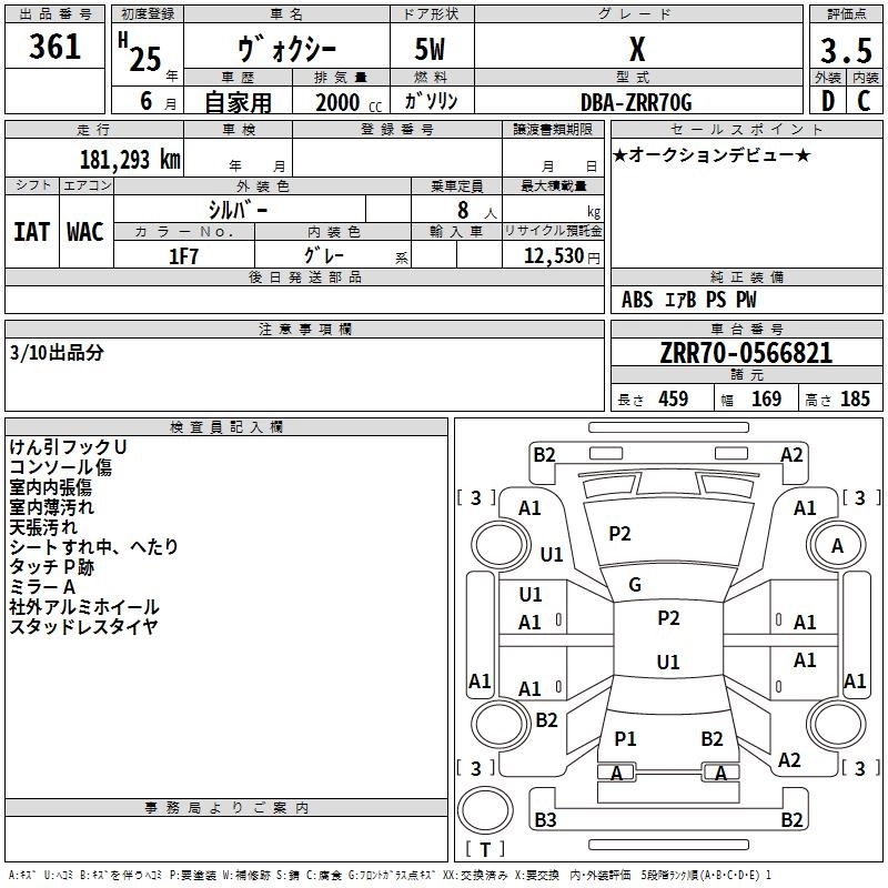 TOYOTA VOXY 2013 г., лот № 361