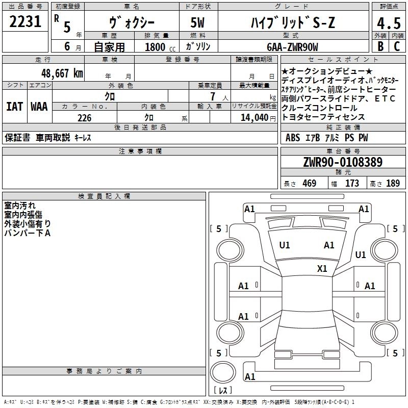 TOYOTA VOXY 2023 г., лот № 2231