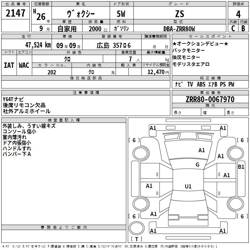 TOYOTA VOXY 2014 г., лот № 2147