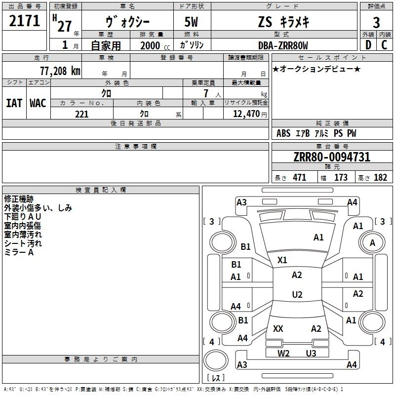 TOYOTA VOXY 2015 г., лот № 2171