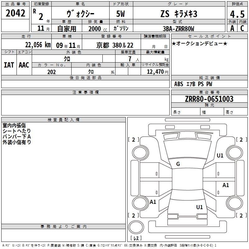 TOYOTA VOXY 2020 г., лот № 2042