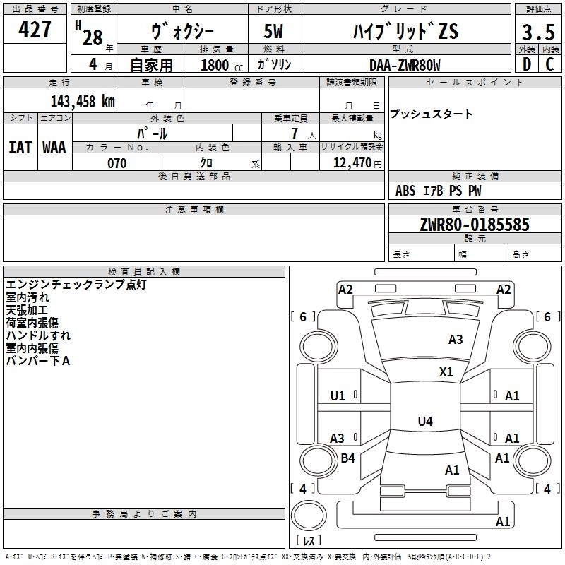 TOYOTA VOXY 2016 г., лот № 427