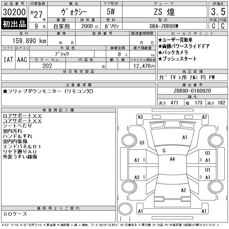 TOYOTA VOXY 2015 г., лот № 30200