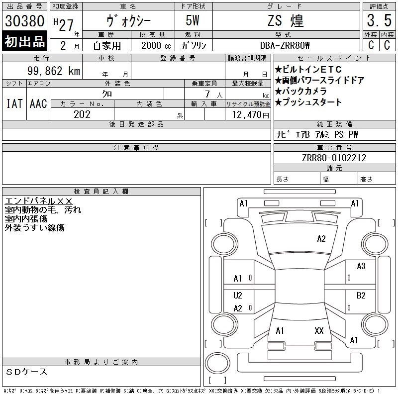 TOYOTA VOXY 2015 г., лот № 30380