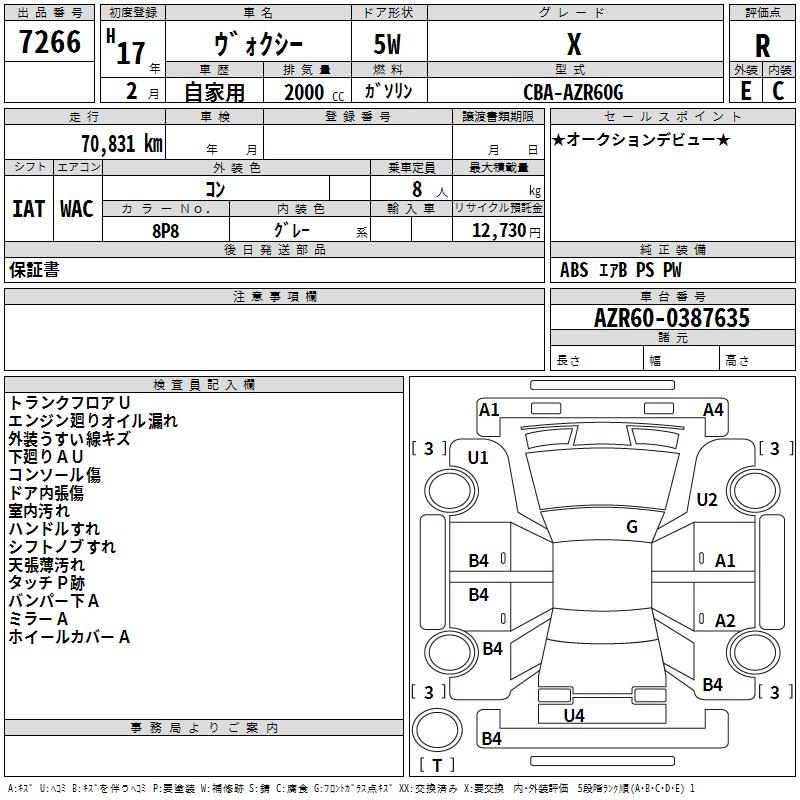 TOYOTA VOXY 2005 г., лот № 7266
