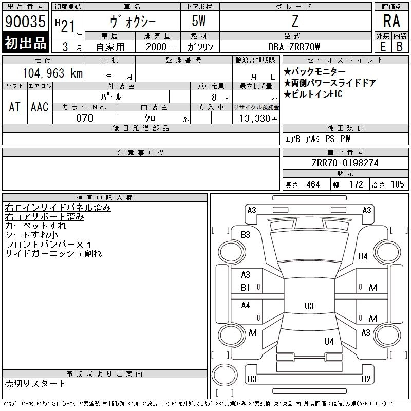 TOYOTA VOXY 2009 г., лот № 90035