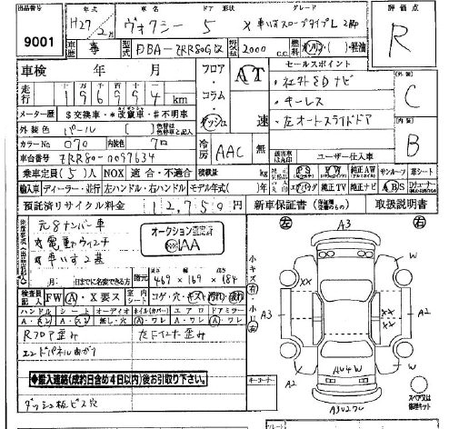 TOYOTA VOXY 2015 г., лот № 9001