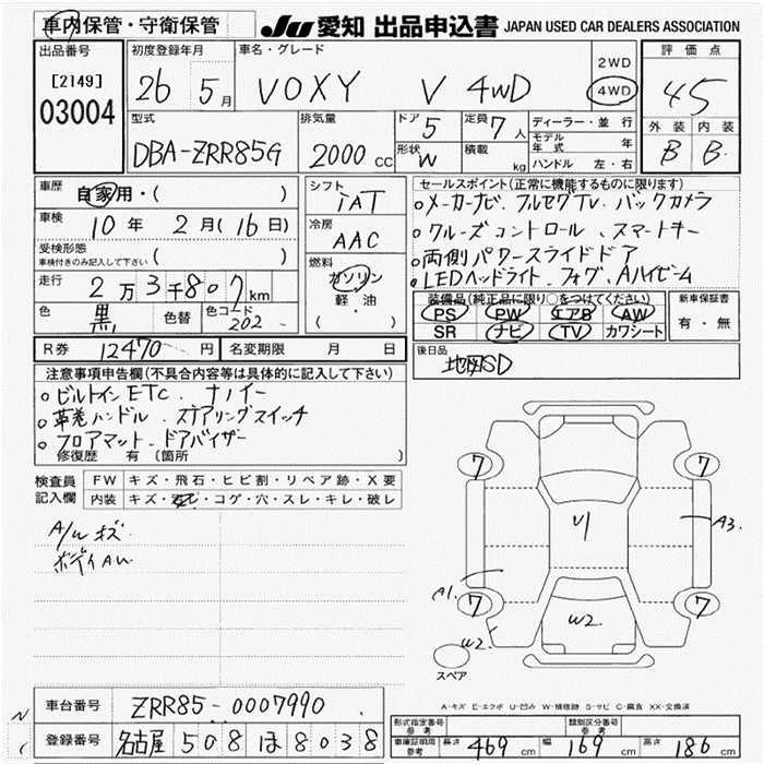 TOYOTA VOXY 2014 г., лот № 3004