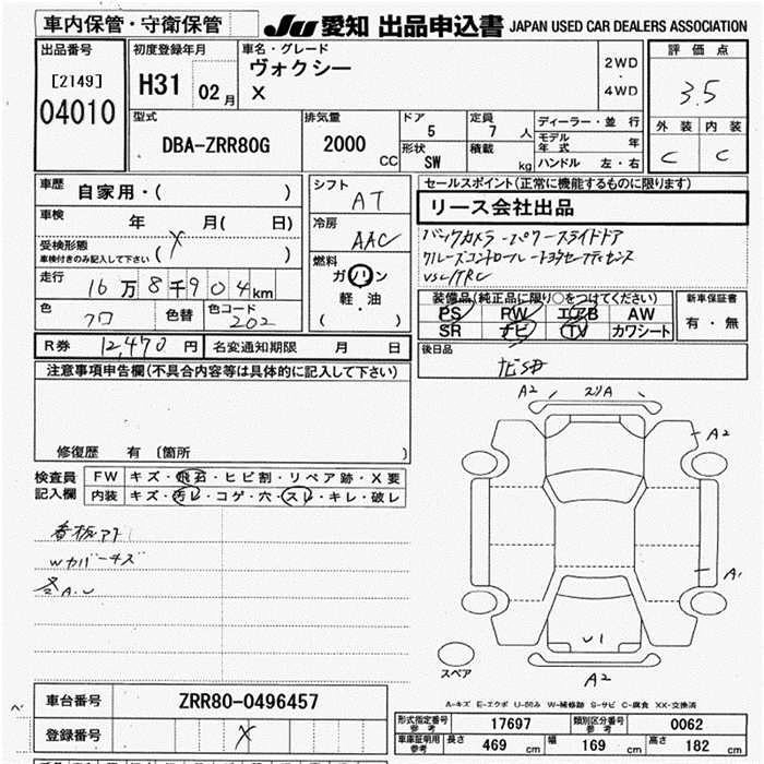 TOYOTA VOXY 2019 г., лот № 4010