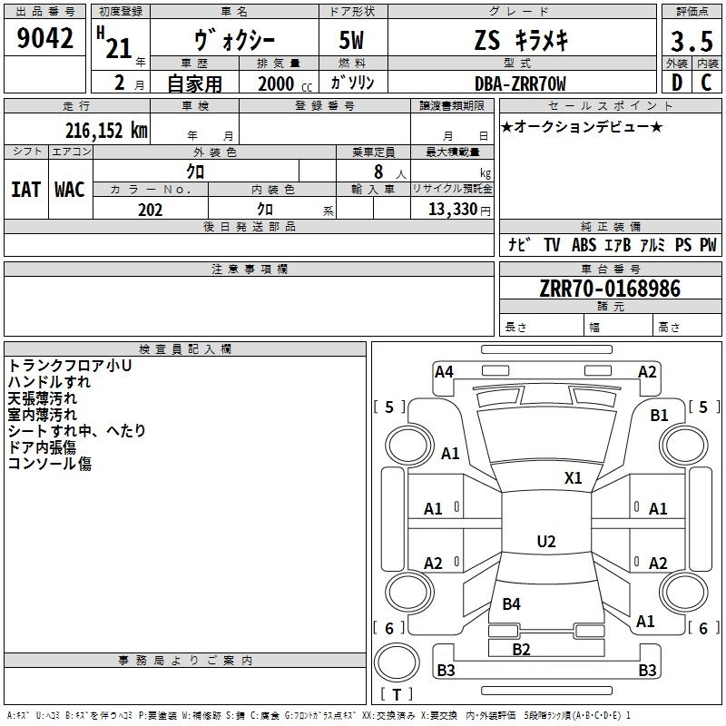 TOYOTA VOXY 2009 г., лот № 9042
