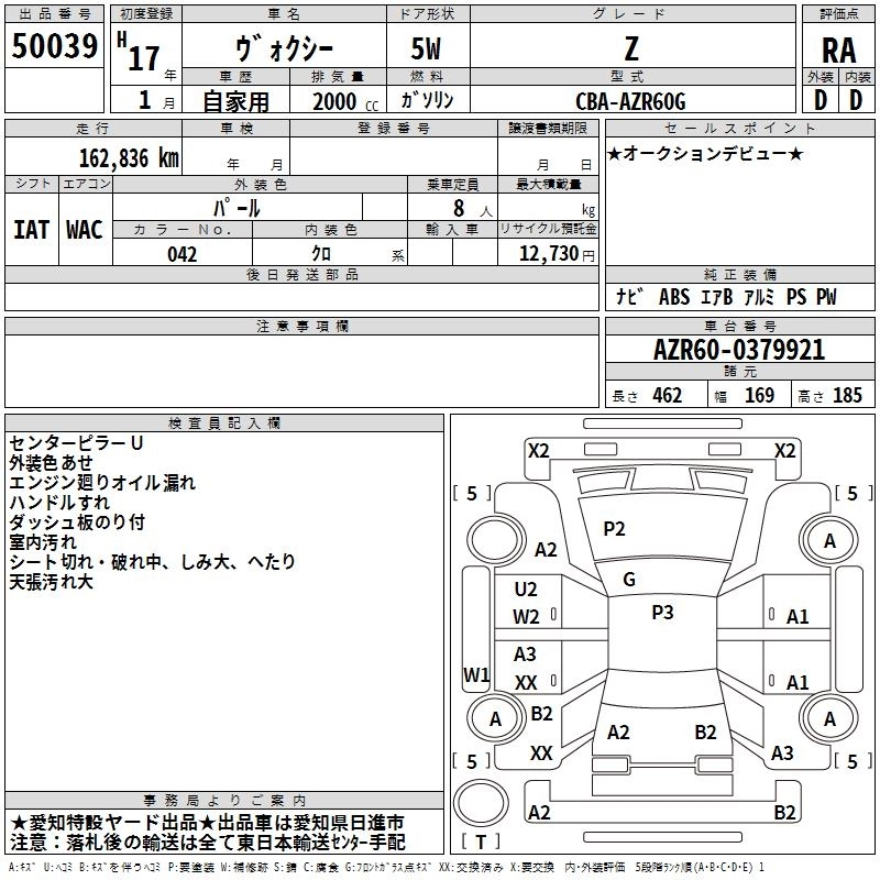 TOYOTA VOXY 2005 г., лот № 50039