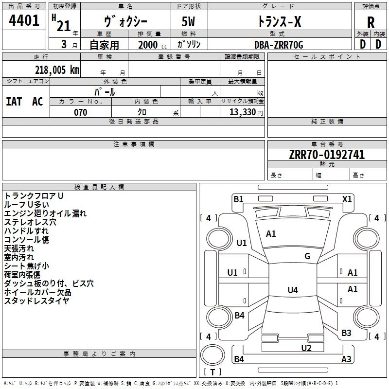 Год выпуска2009 Пробег 218 000 км КузовZRR70G Комплектация TRANCE -X
