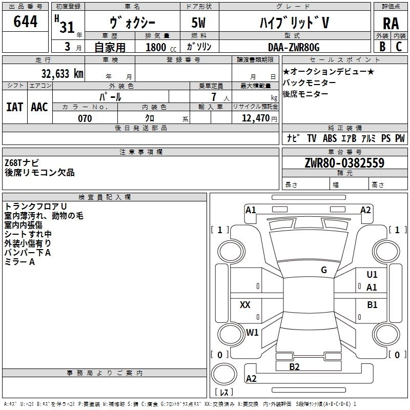 TOYOTA VOXY 2019 г., лот № 644