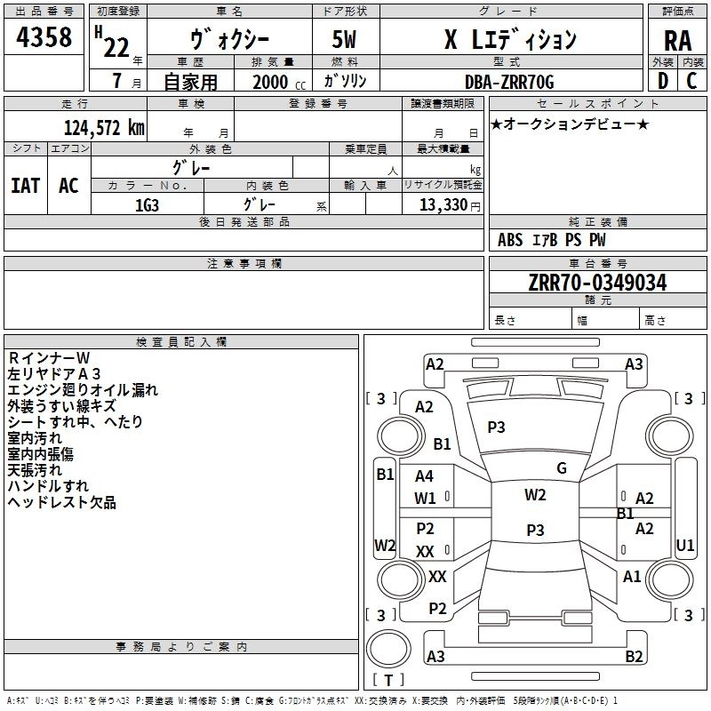 TOYOTA VOXY 2010 г., лот № 4358
