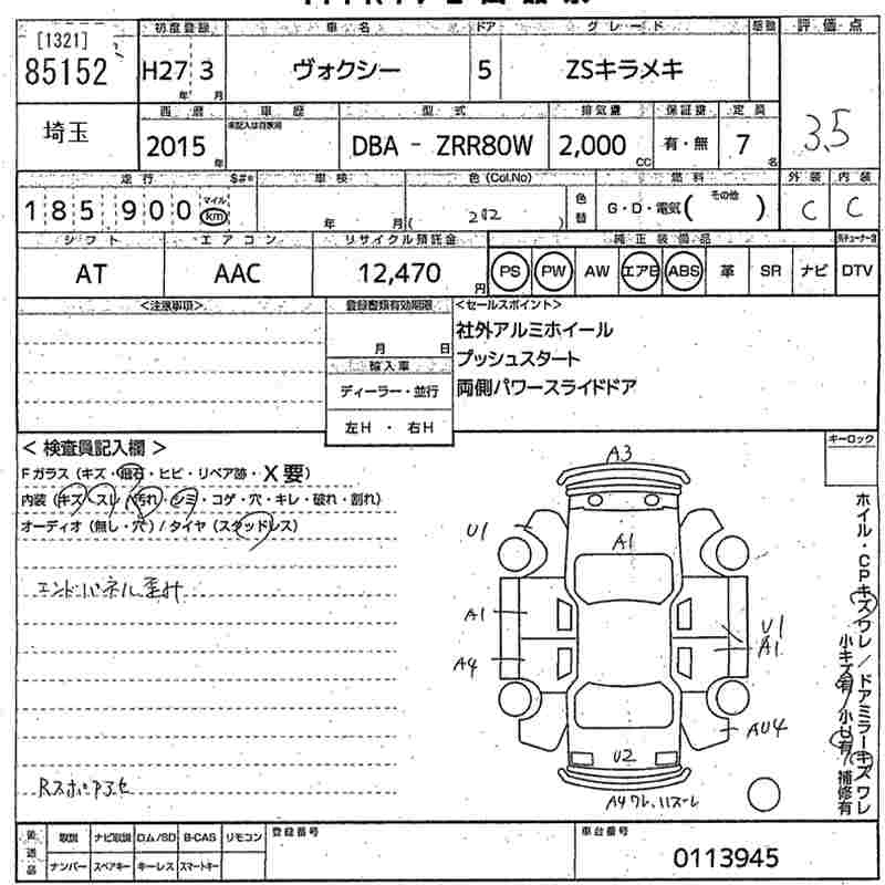 TOYOTA VOXY 2015 г., лот № 85152