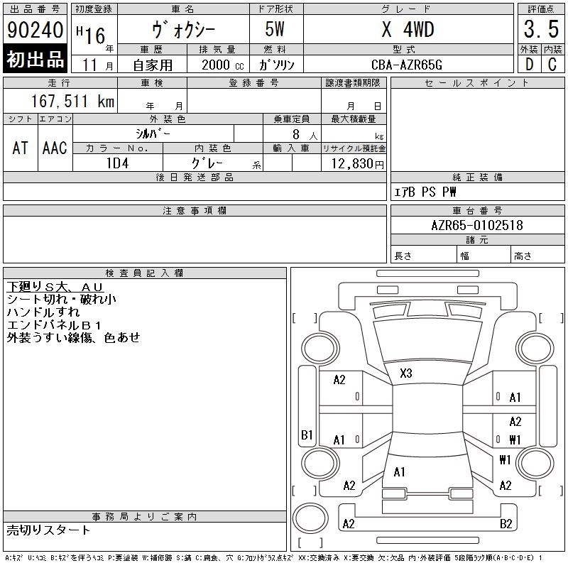Статус выставлен на аукцион Лот 90240 Аукцион CAA Chubu Дата аукциона 11.03.2026