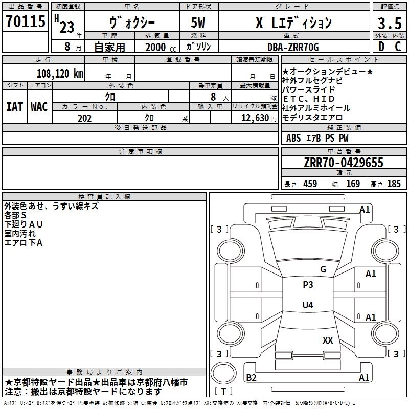 TOYOTA VOXY 2011 г., лот № 70115