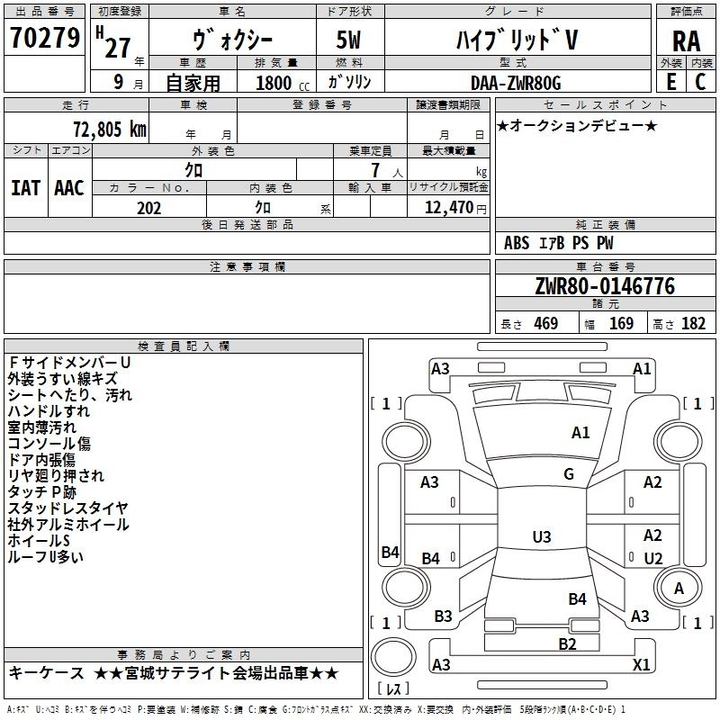 TOYOTA VOXY 2015 г., лот № 70279