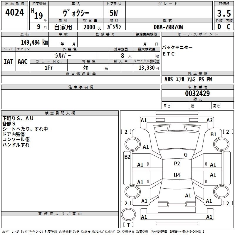 TOYOTA VOXY 2007 г., лот № 4024