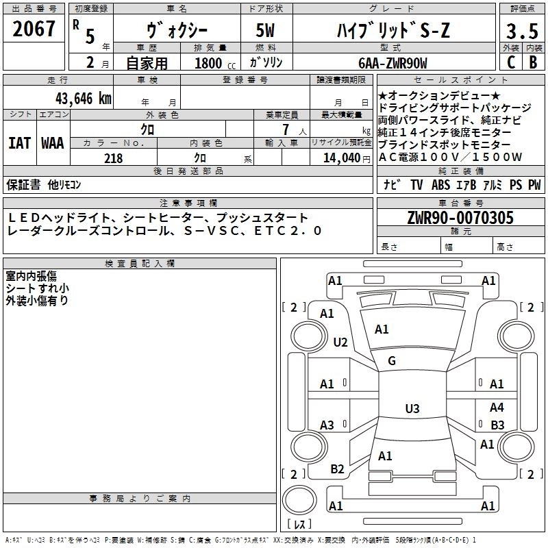 TOYOTA VOXY 2023 г., лот № 2067
